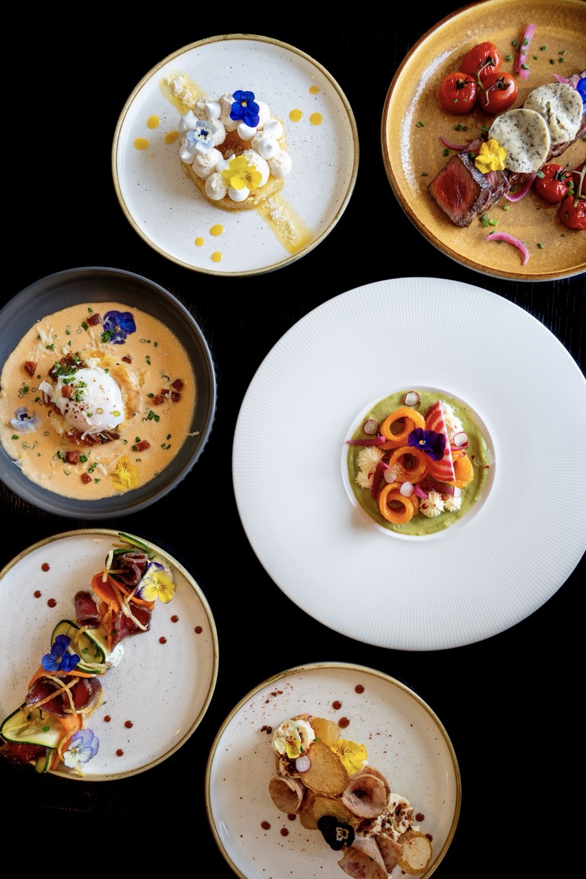 Petit Camembert rôti au miel ; Dentelle de brick Normande, Camembert et andouille ; Tartare de boeuf Normand ; Terrine de campagne ; Croquettes de pdt Scamorza ; Croustillant de poulet panko ; Oeuf parfait bouillon meurette